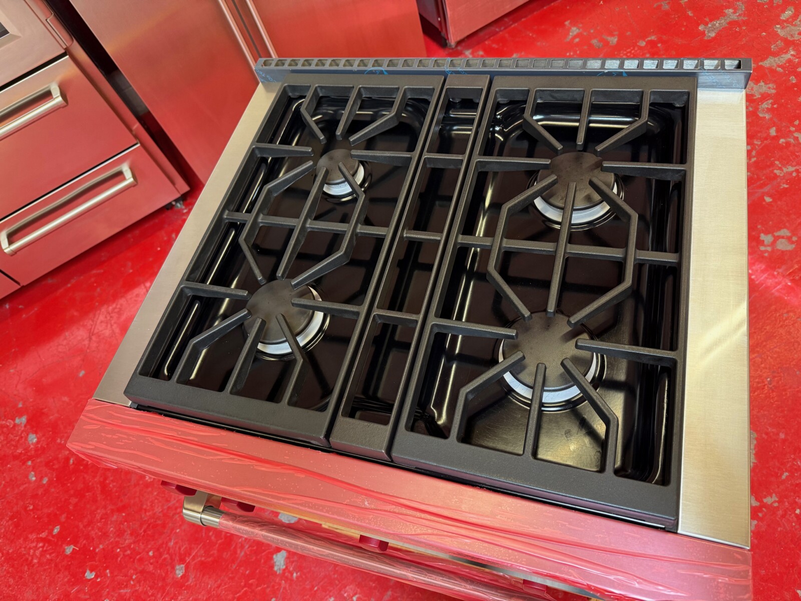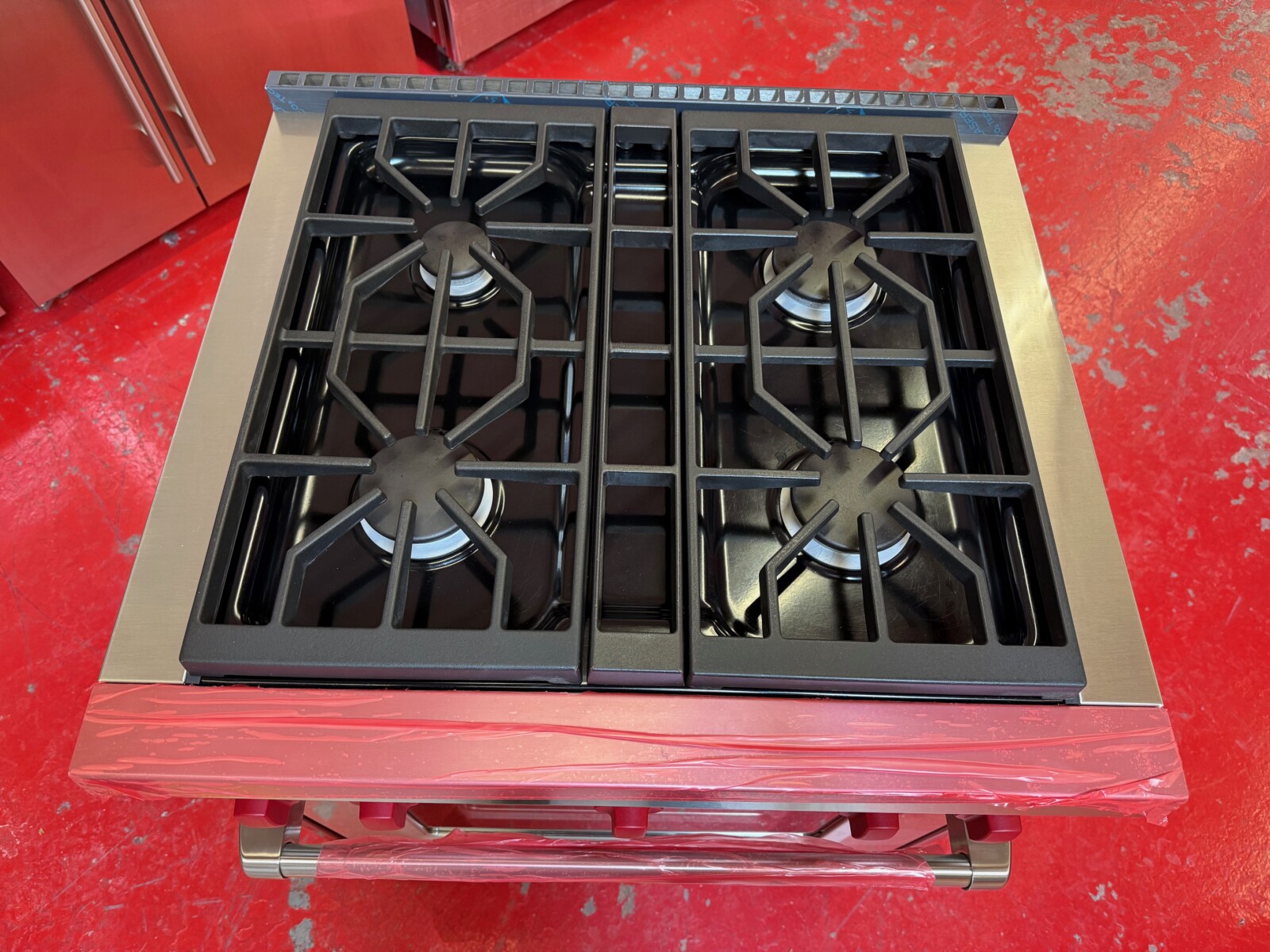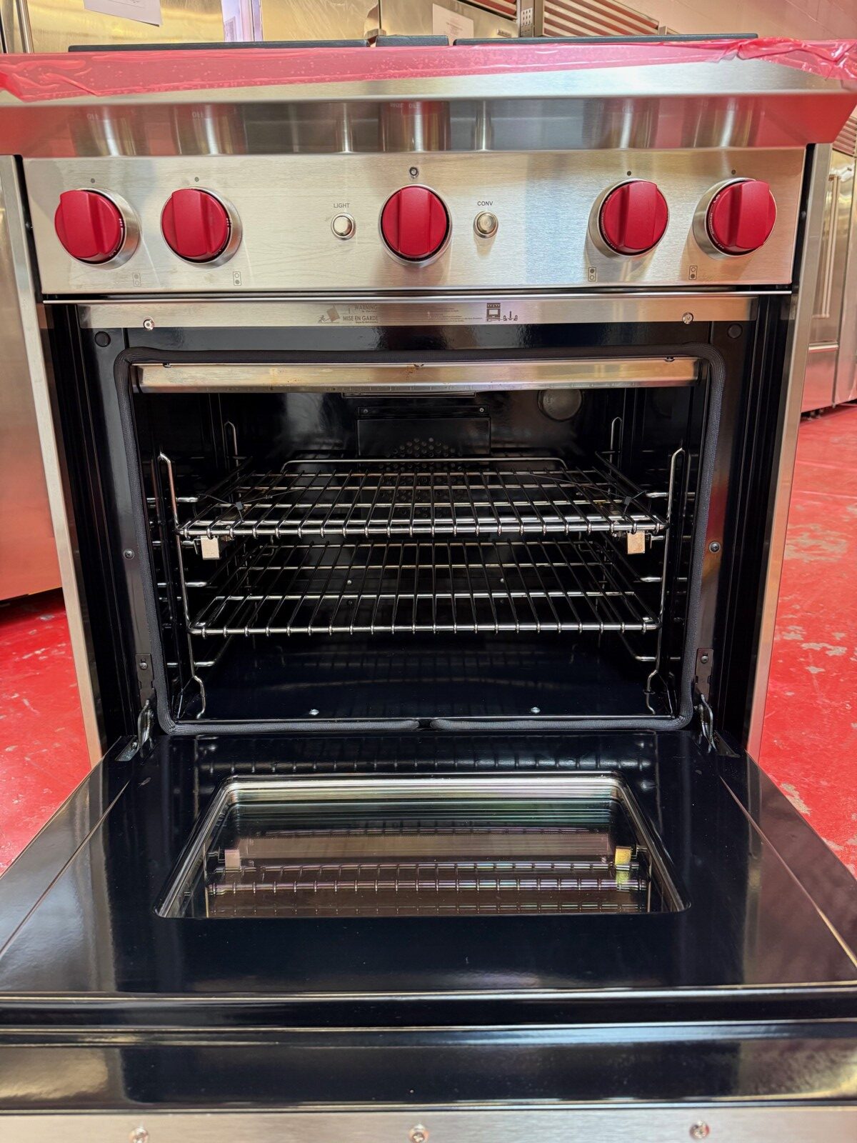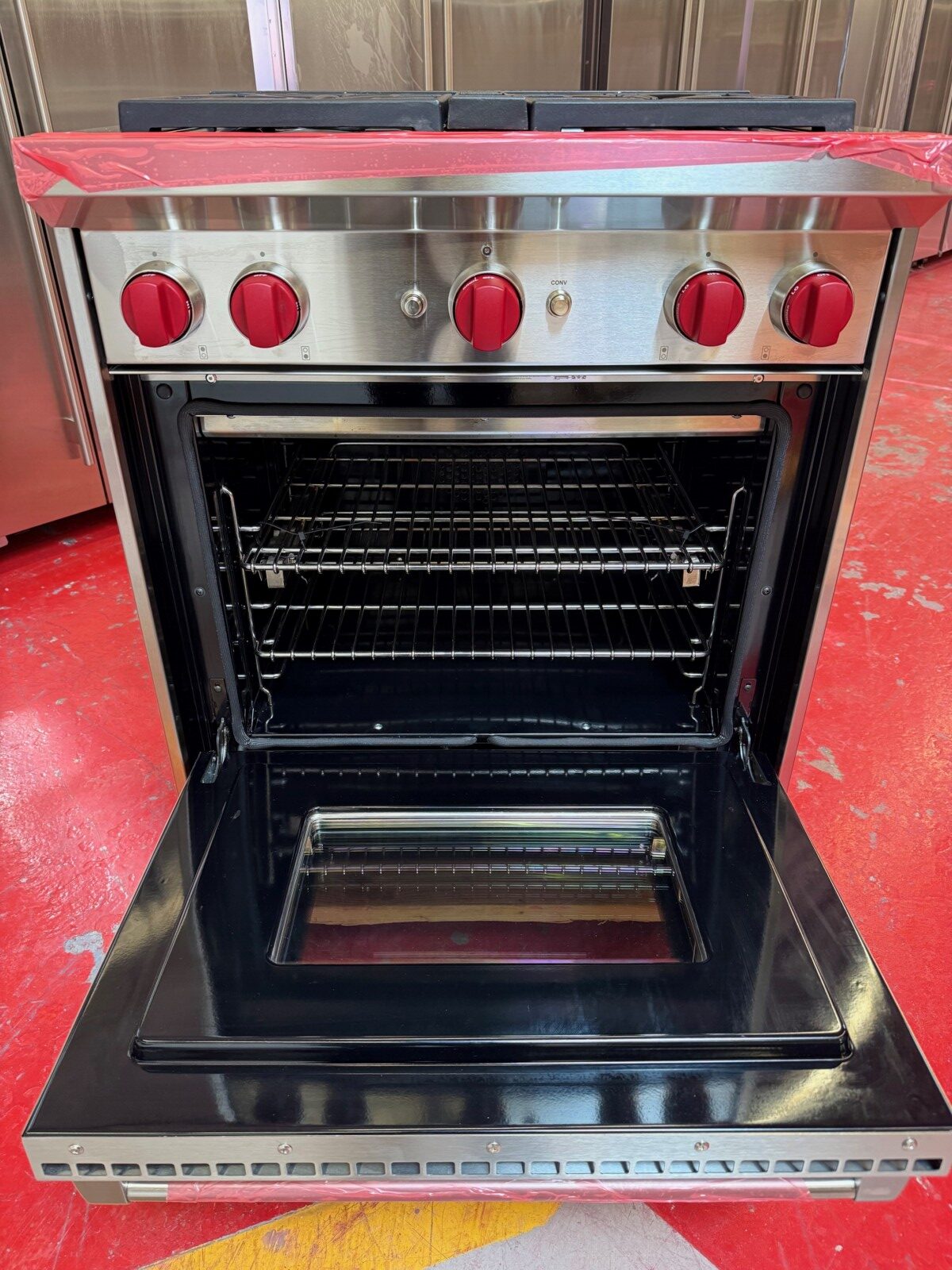 30 Inch Pro-Style Freestanding Gas Range with 4 Dual-Stacked Sealed Burners, 4.4 cu. ft. Convection Oven, Continuous Grates, Infrared Broiler, Red Control Knobs, Auto-Reignition, Island Trim, ENERGY STAR and Star-K Certified: Natural Gas.