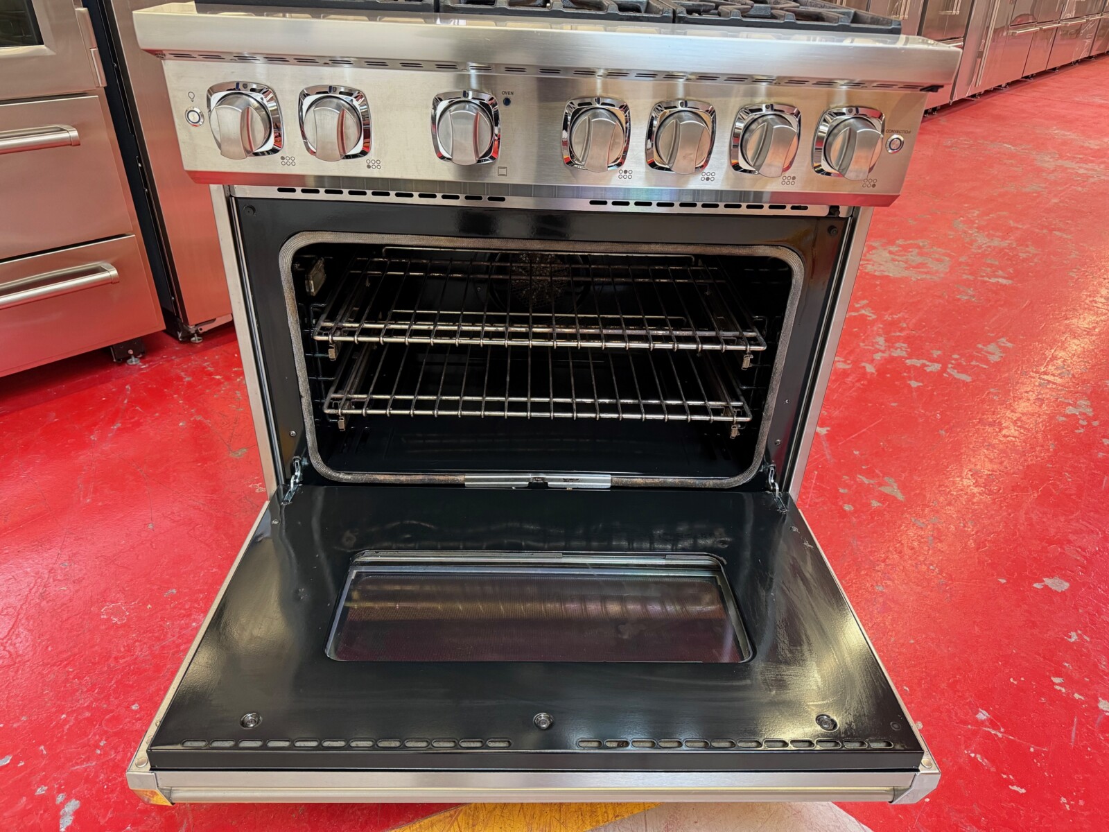 36 Inch Pro-Style Gas Range with 6 Viking Elevation Sealed Burners, VariSimmers, ProFlow Convection Oven, Manual Clean and Infrared Broiler: Stainless Steel, Natural Gas.