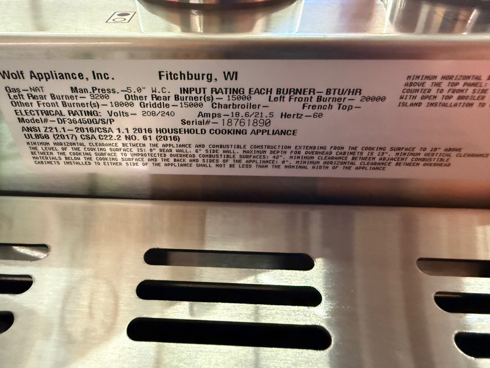 36” Wolf Dual Fuel Range M Series DF36450GSP (New Showroom Model)