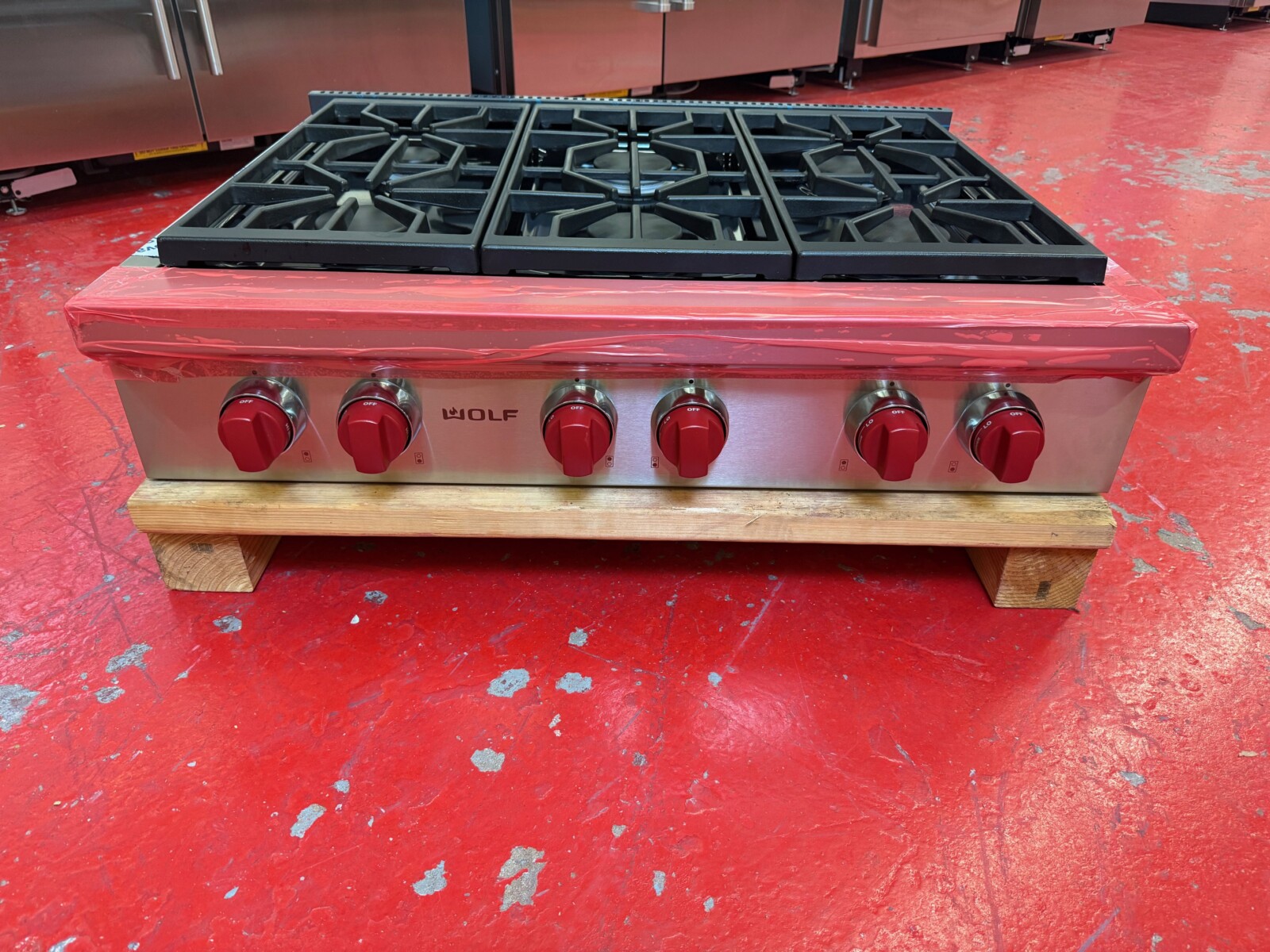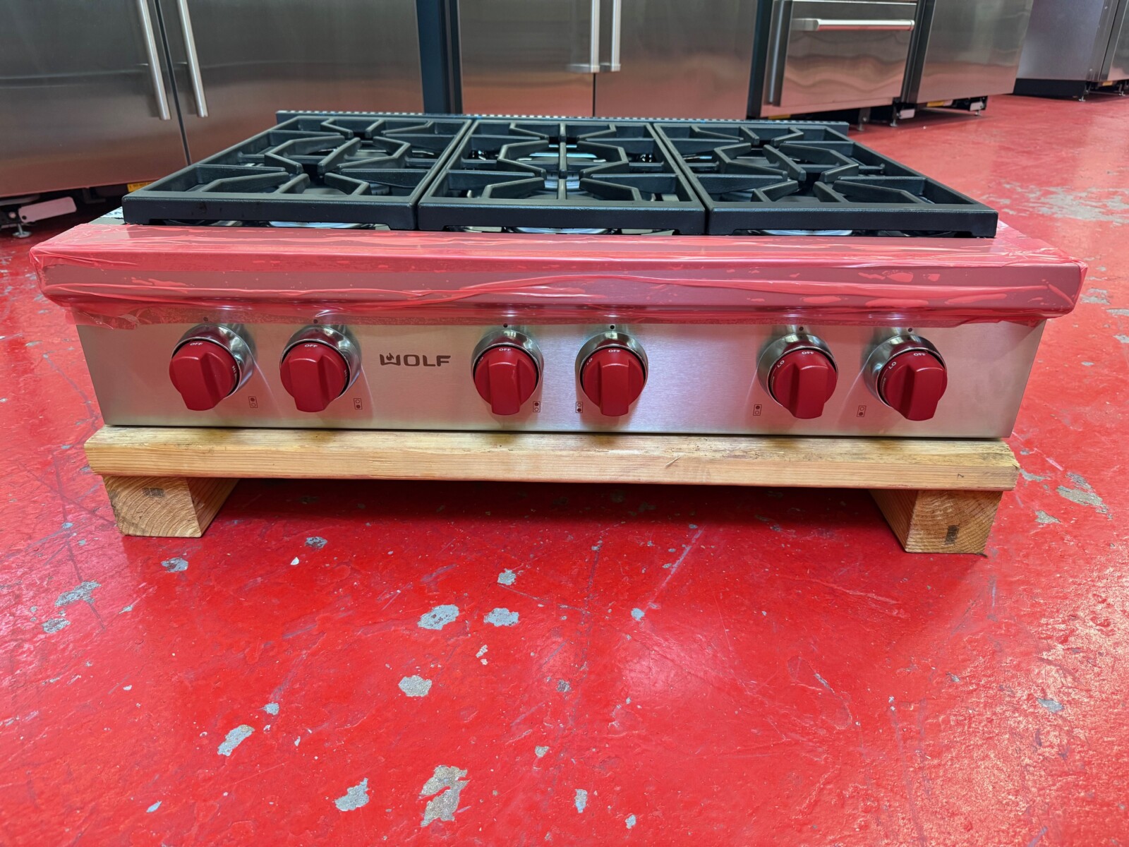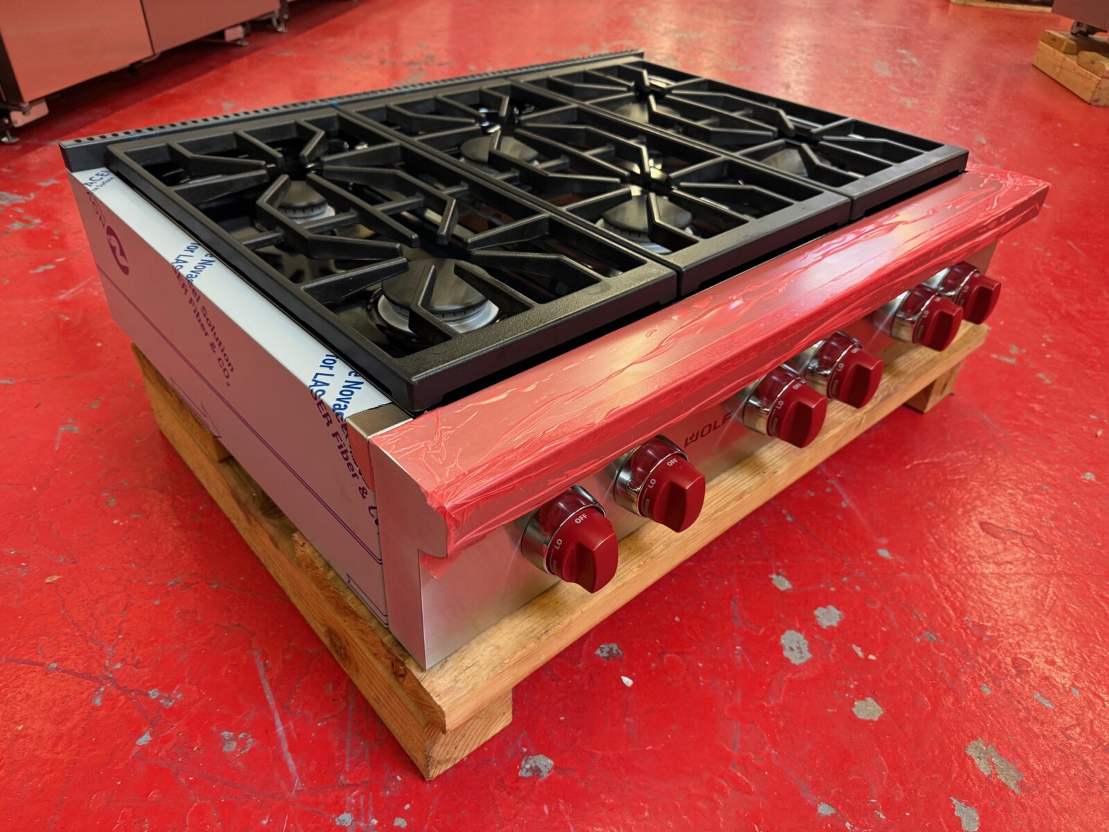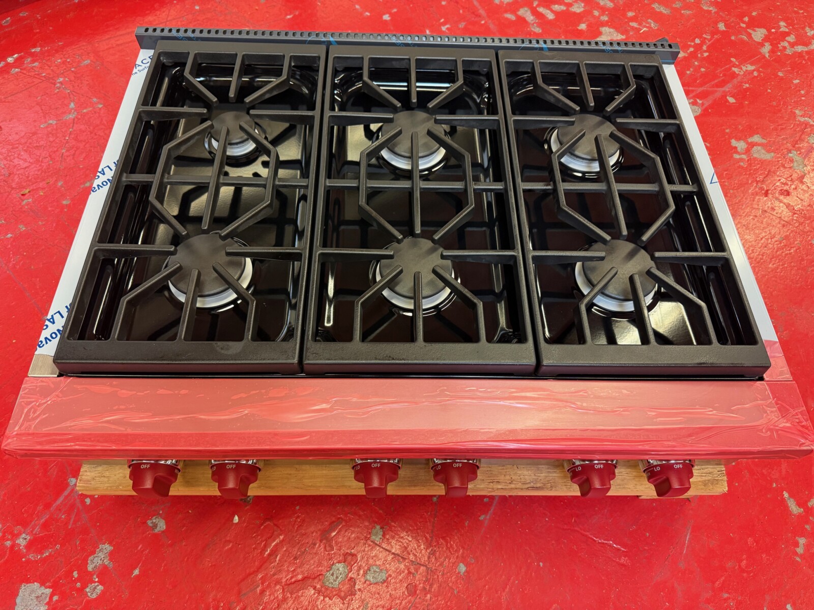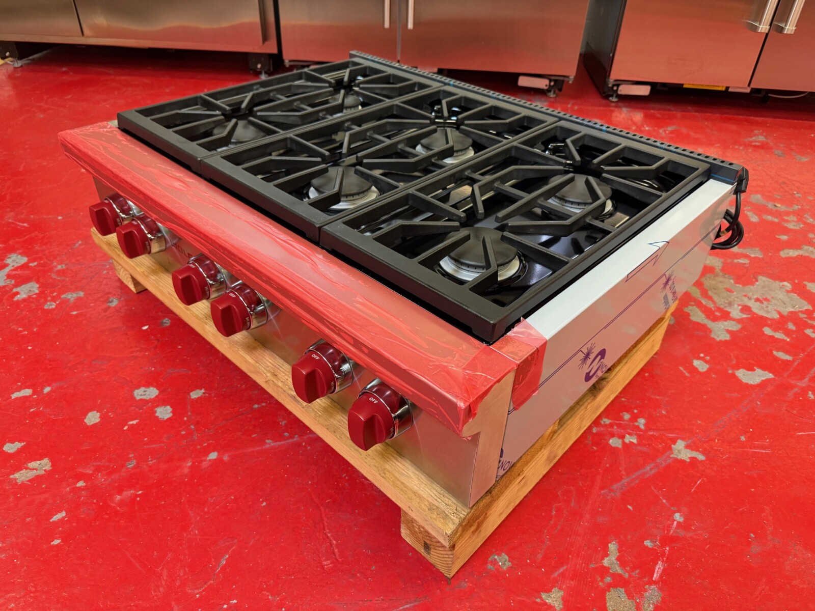 36 Inch Pro-Style Gas Rangetop with 6 Dual-Stacked Sealed Burners, Porcelain-Coated Cast Iron Continuous Grates, Simmer/Melt Feature, Automatic Reignition and Star-K Certified: Natural Gas.