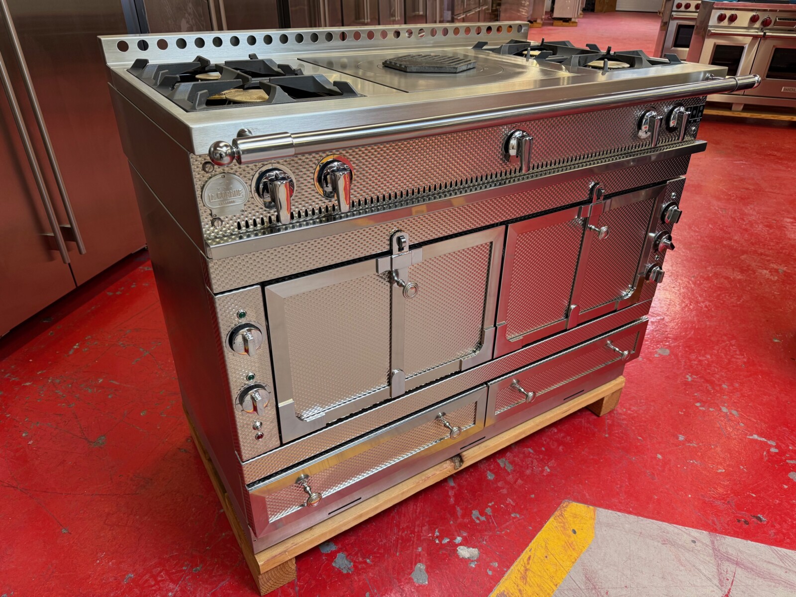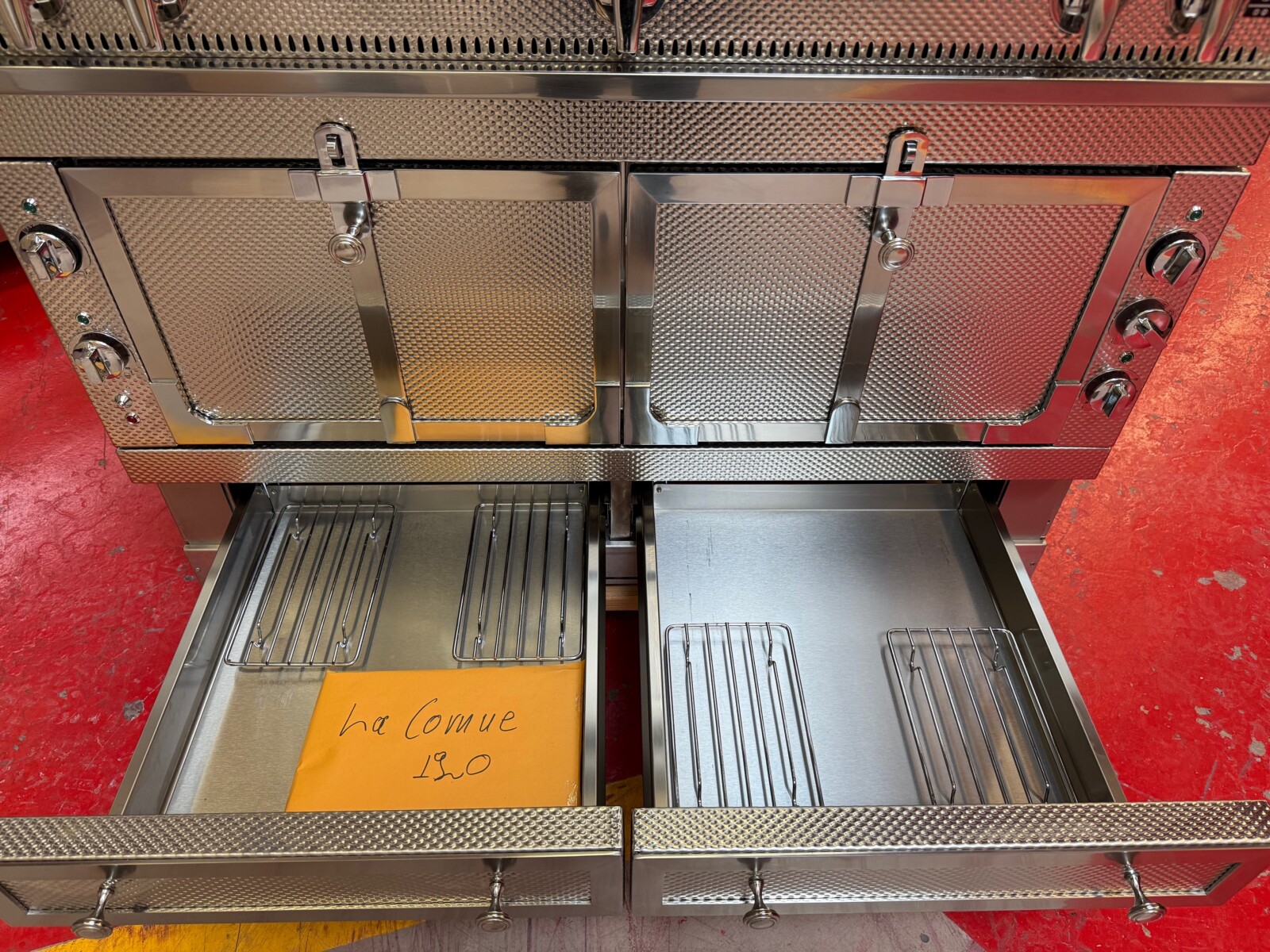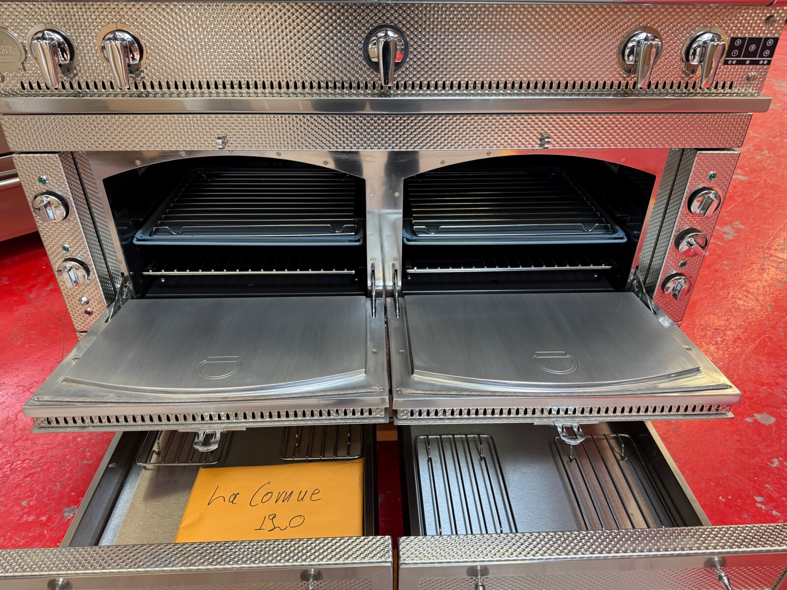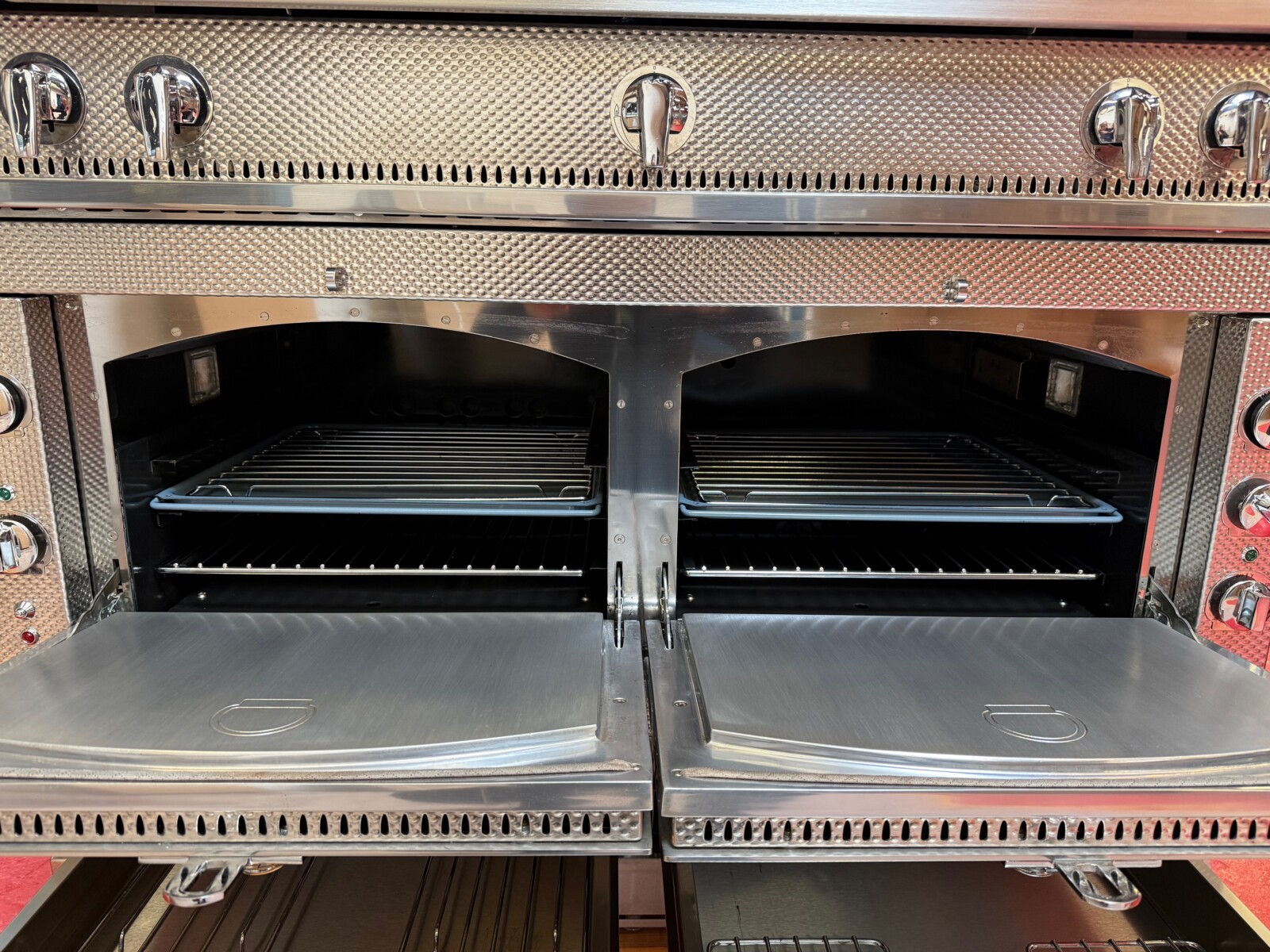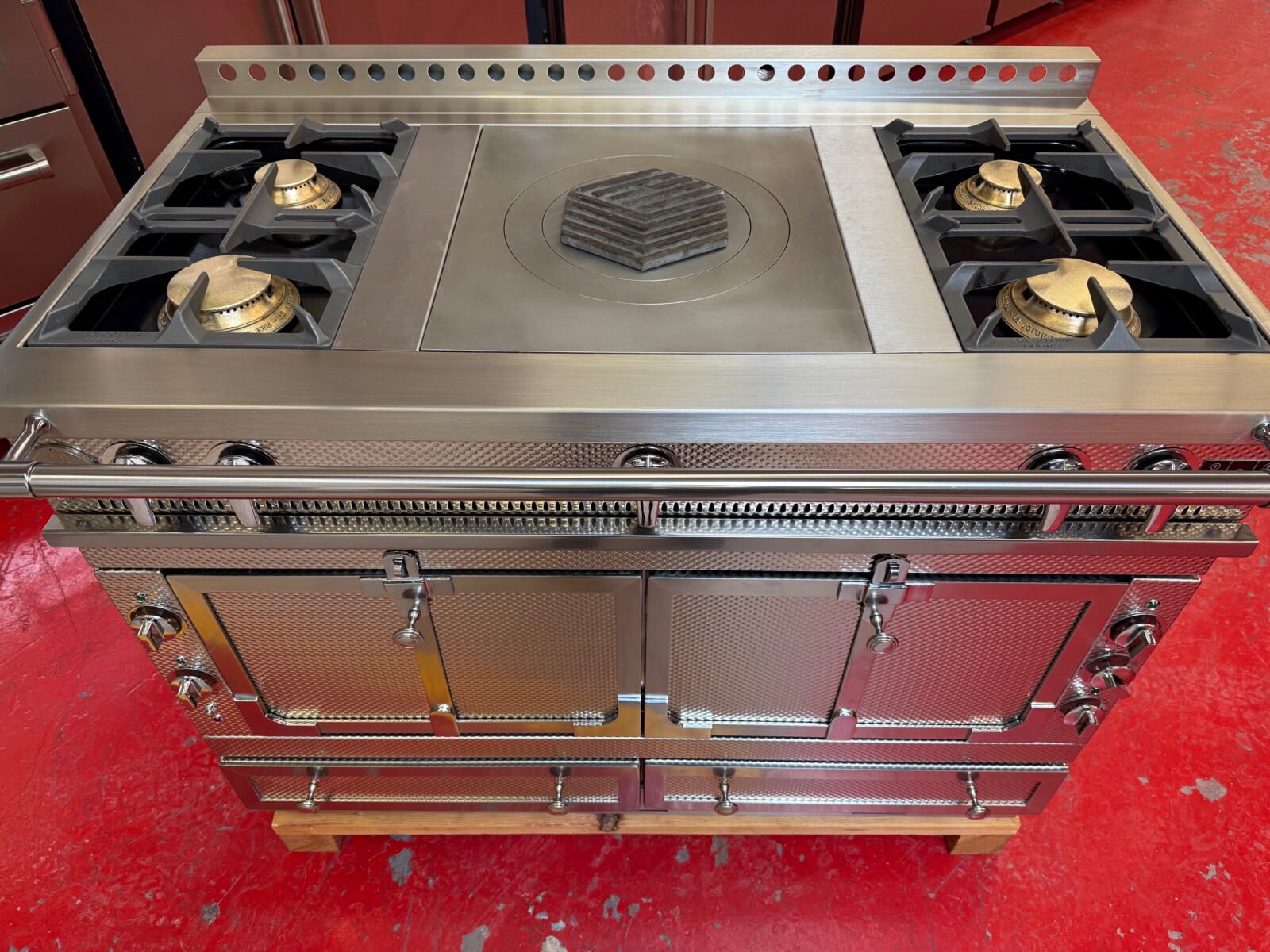 The Château 120 range embodies an impressive cooking capability in a deceptively small package. Measuring nearly 48″, this robust range features two vaulted ovens, one gas and one electric, and 5 range top configurations.