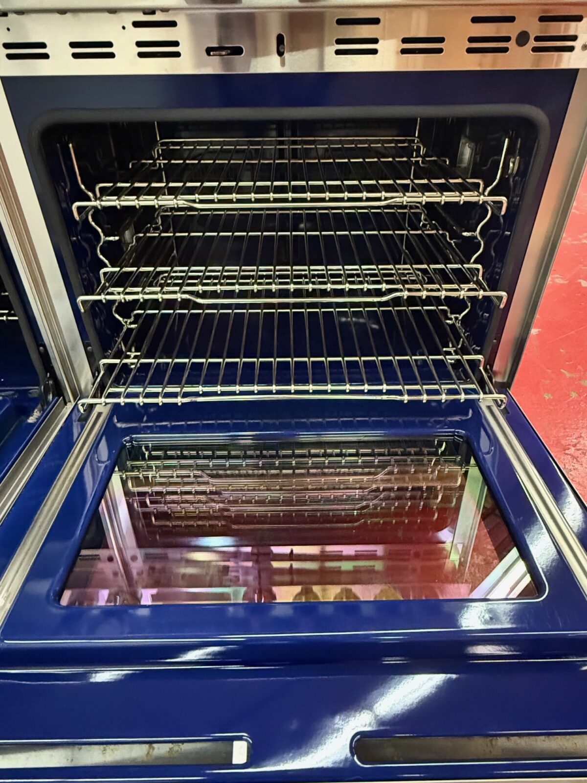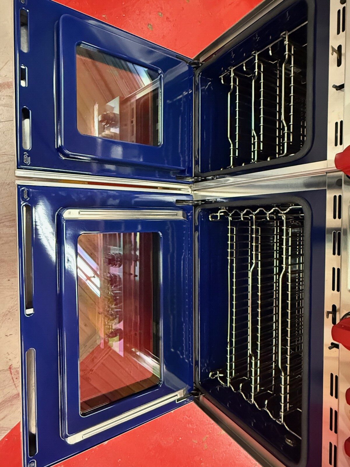 Used in great shape comes with a 1 year full warranty. Some scratches/Marks at the bottom of the ovens.