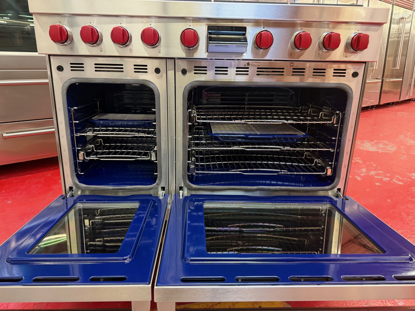 48 Inch Freestanding Dual-Fuel Smart Range with 6 Dual Stacked Sealed Burners, Integrated Infrared Charbroiler, Double Oven, 7.8 cu. ft. Total Oven Capacity, Self-Clean, Continuous Grates, Gourmet Mode, Touch Screen Controls, 10 Cooking Modes, Halo Lights, Temperature Probe, Sabbath Mode and STAR-K Certified: Stainless Steel – Natural Gas.