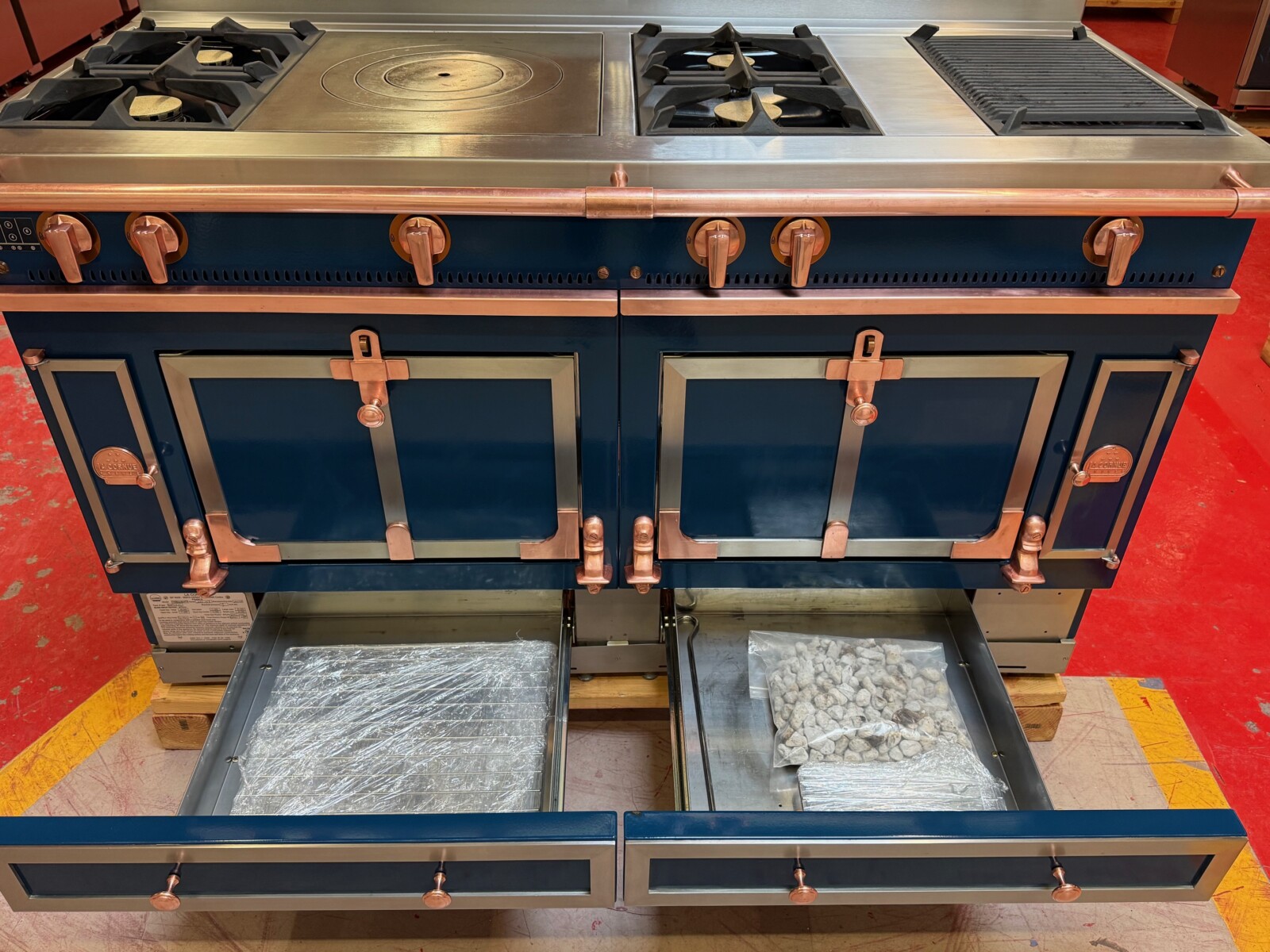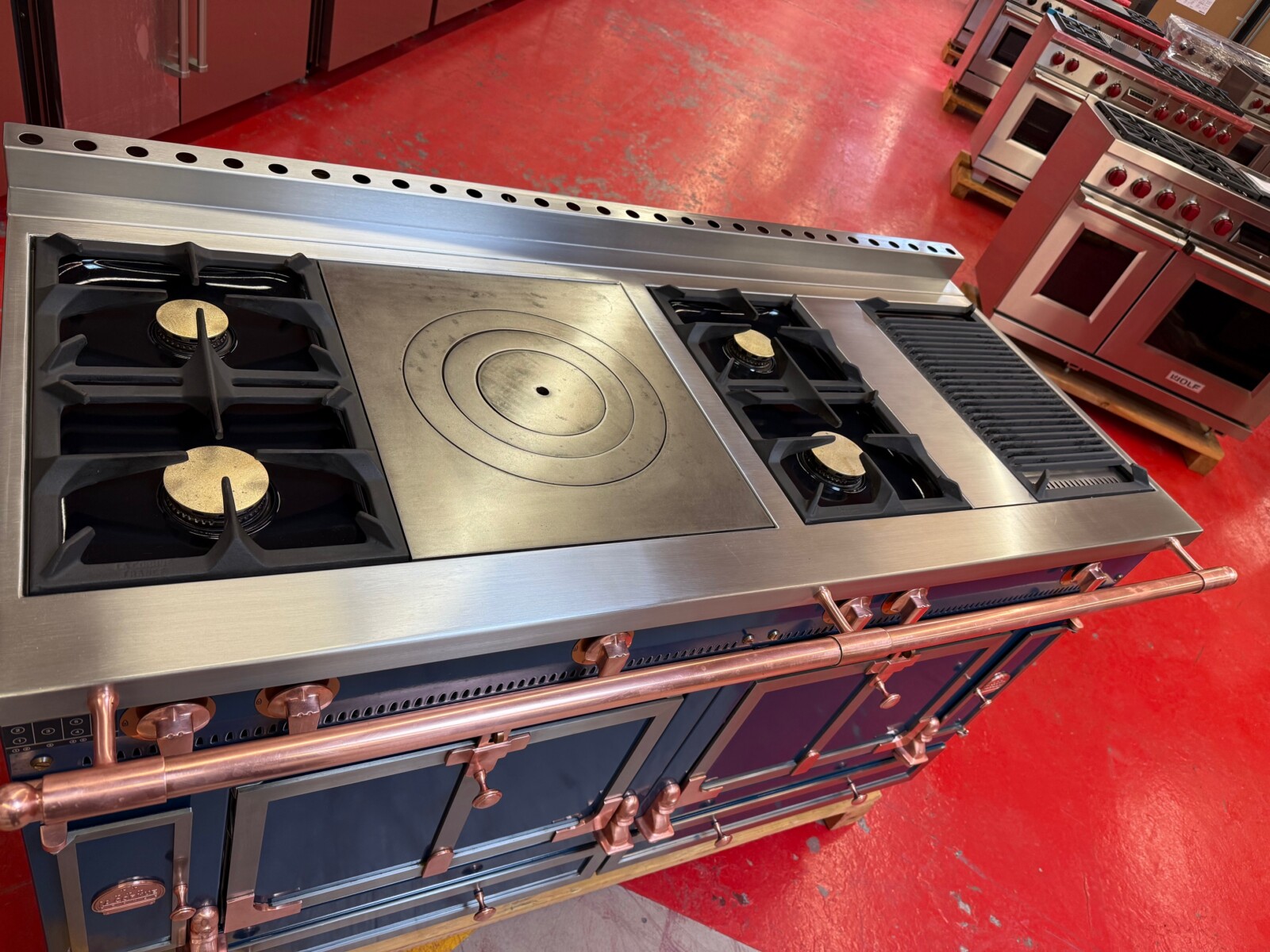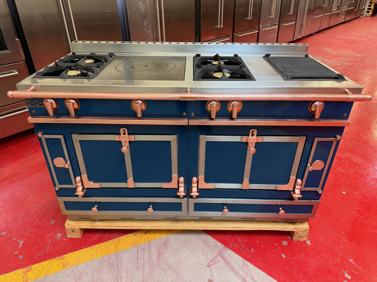 Blue with Copper and Chrome Stainless Trim.