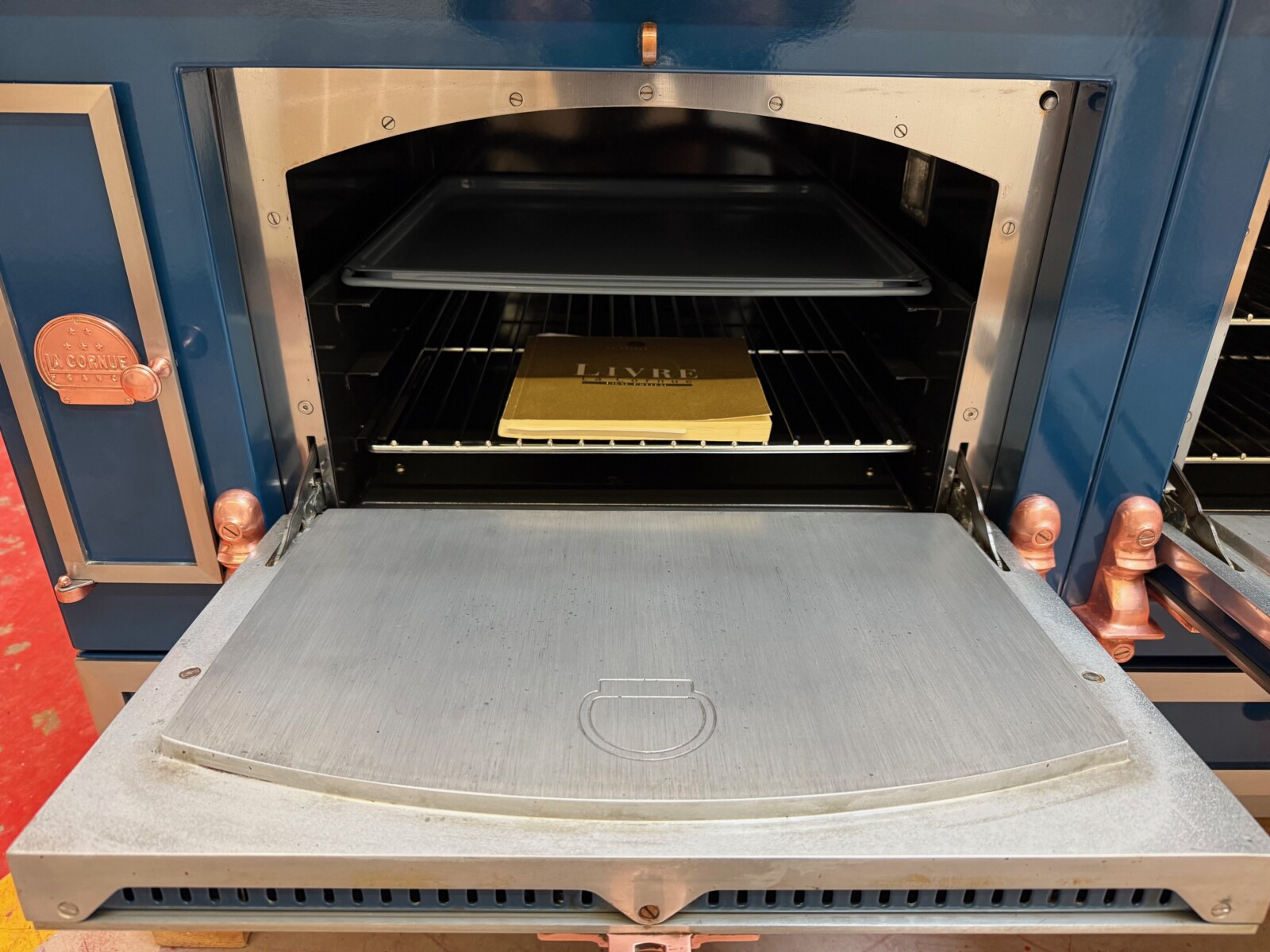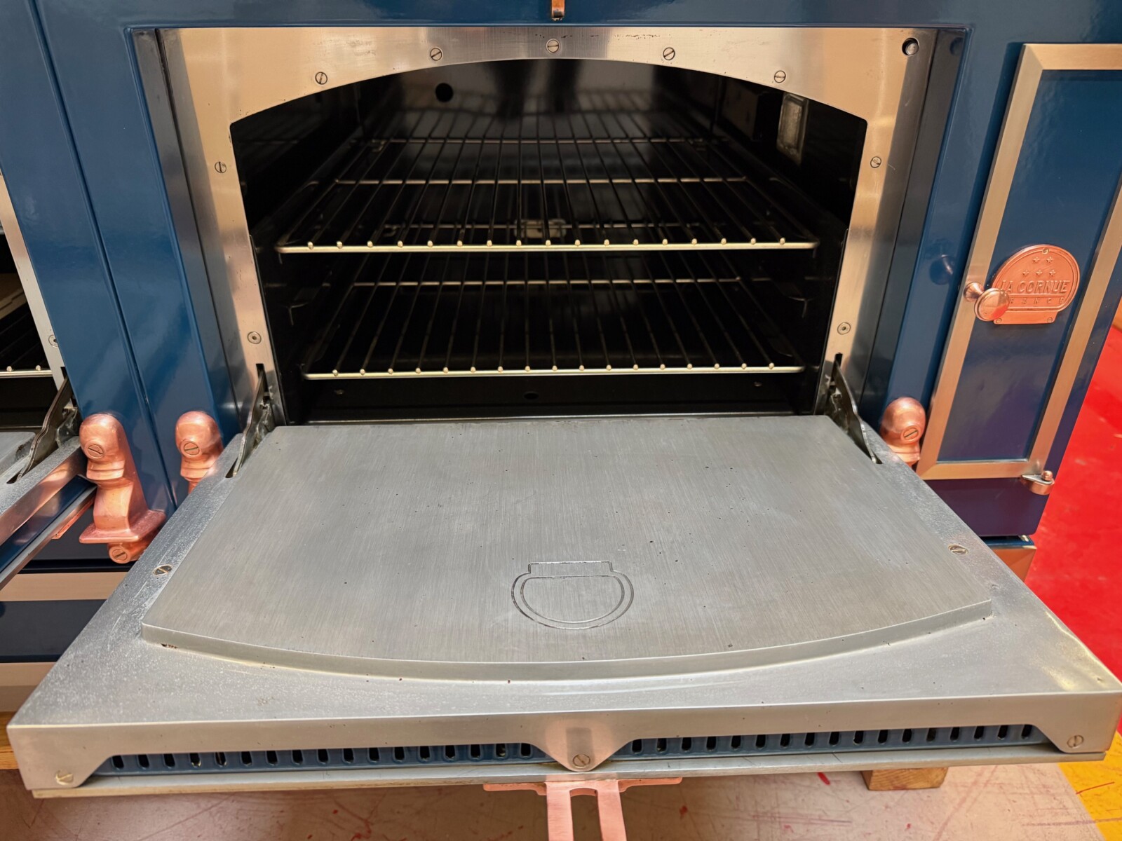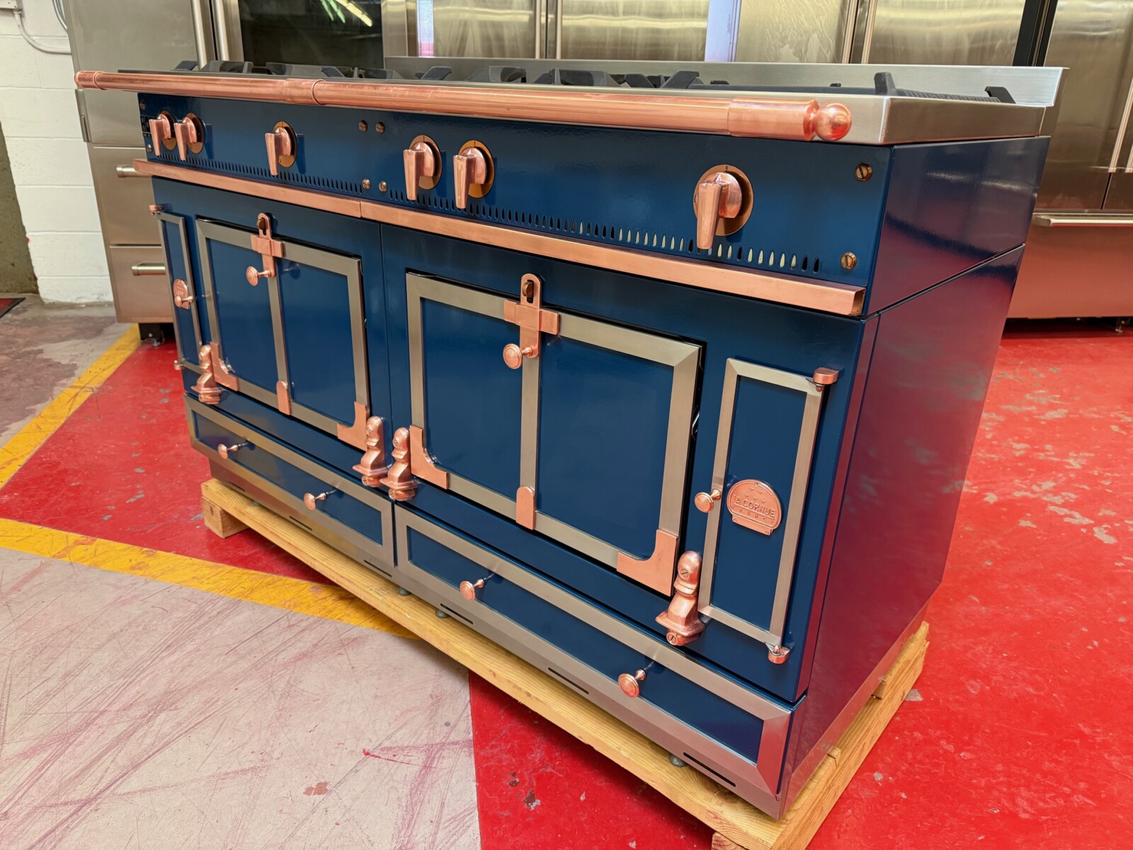 Blue with Copper and Chrome Stainless Trim.