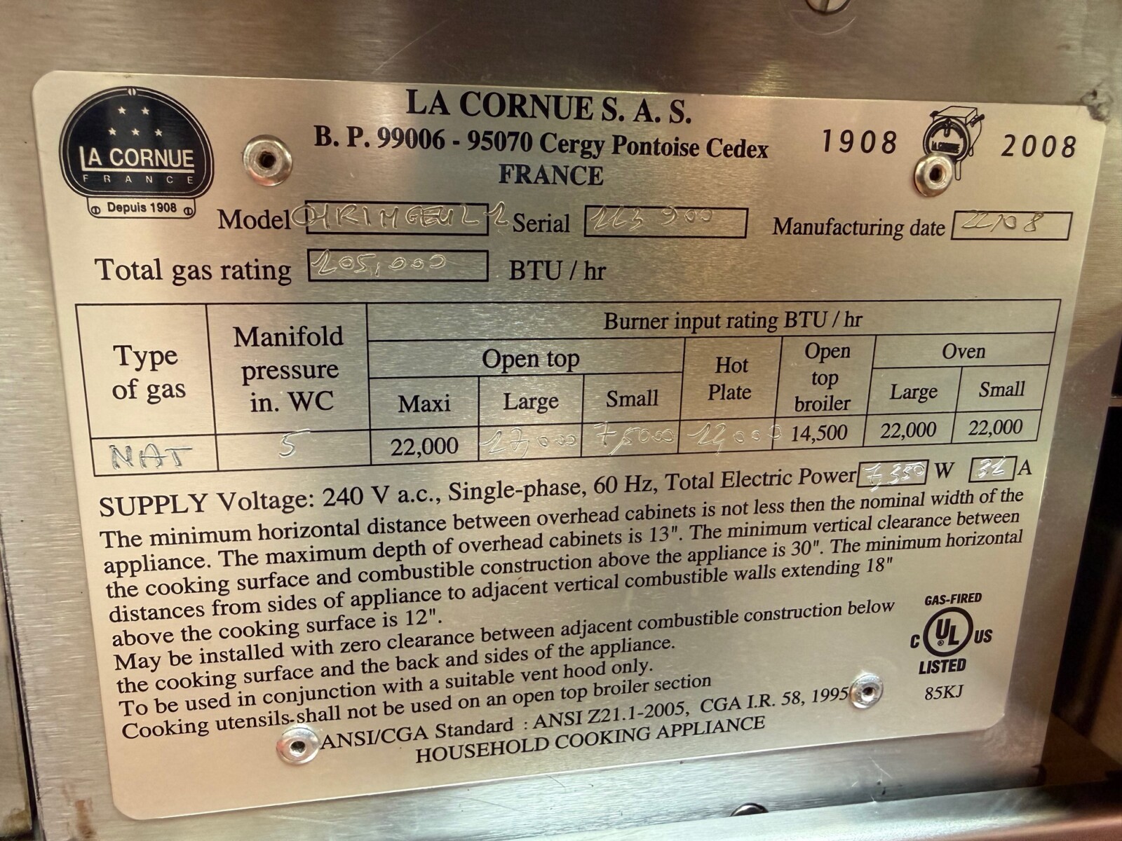 Range is used in great shape with normal wear 2008 model. These ranges made to last 100 years.